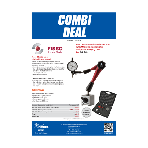 Fisso Strato Line Messuhrstativ mit Mitutoyo Messuhr in einem Kunststoffkoffer zu einem Sonderpreis.