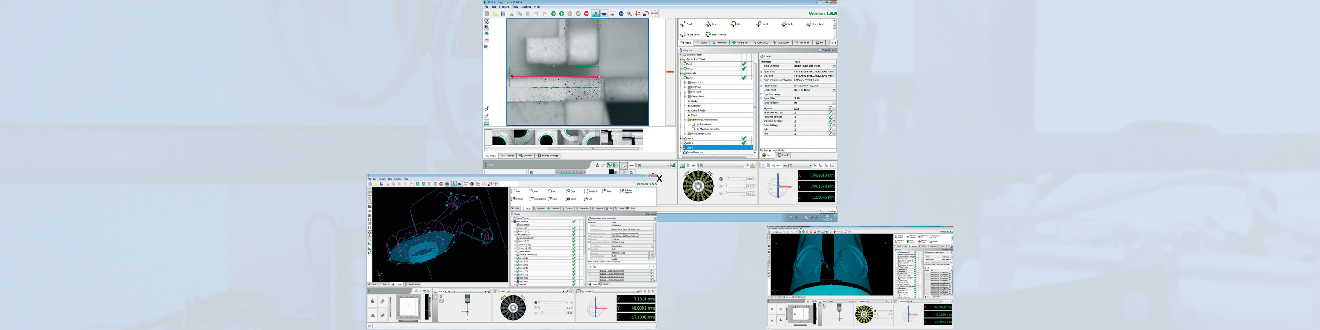 Approve for DeMeet is a true multi-sensor software package, where the difference in sensor origin of the measuring input is limited to only the necessary. All the measuring results of video and touch probe can be displayed, reported, exported and used in constructs together, and are dynamically updated. The measuring results can also be displayed together in a 3D view.