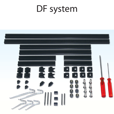 DF consists of a full range of fixture components: bars, connection components and fixing components. Produced from extruded or machined AlMgSi1 aluminum with either a black or silver anodized finishing. The black anodized version avoids light reflections. The silver components can be applied when light reflections from the fixture are required.