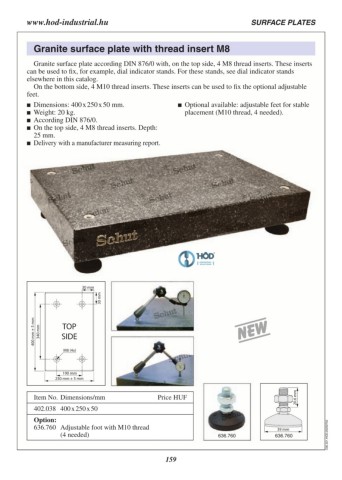 Granite surface plate according DIN 876/0 with, on the top side, 4 M8 thread inserts. These inserts