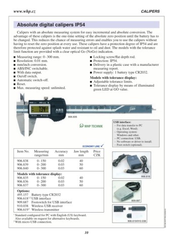 having to reset the zero position at every use. These calipers have a protection degree of IP54 and are