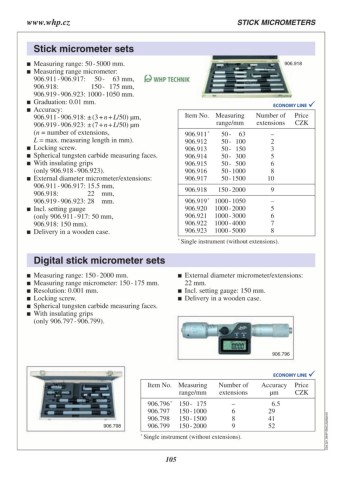 906.911 - 906.918: ± (3 + n + L/50) µm, Item No. Measuring Number of Price