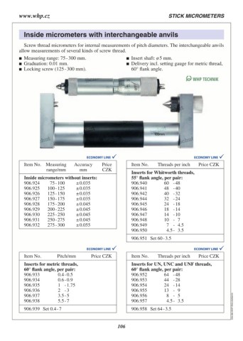 Item No. Measuring Accuracy Price Item No. Threads per inch Price CZK