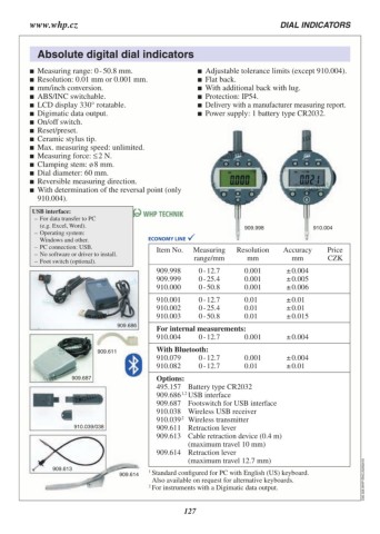 Measuring range: 0 - 50.8 mm. Adjustable tolerance limits (except 910.004).