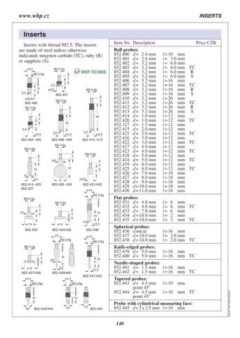 Inserts with thread M2.5. The inserts Item No. Description Price CZK