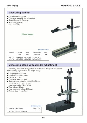 Measuring stand with clear graduation 0.02 mm on the spindle and a hand