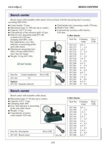 Bench center with rotatable collet chuck. Item No. Clamping Price