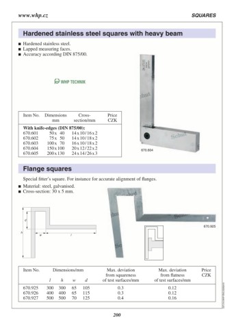 Hardened stainless steel squares with heavy beam