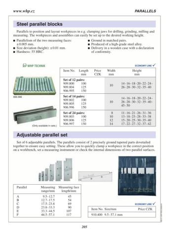 Set of 6 adjustable parallels. The parallels consist of 2 precisely ground tapered parts dovetailed
