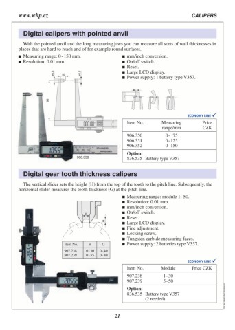 With the pointed anvil and the long measuring jaws you can measure all sorts of wall thicknesses in