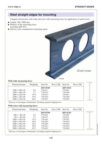 I‑shaped construction with wide and extra wide measuring faces for application of spirit levels.