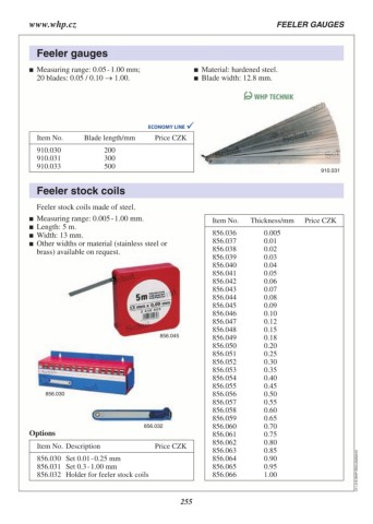 Feeler stock coils Item No. Thickness/mm Price CZK