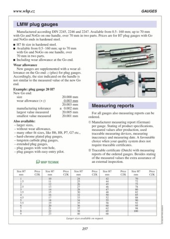 – tungsten carbide plug gauges, inaccuracy and measuring date. A favourable