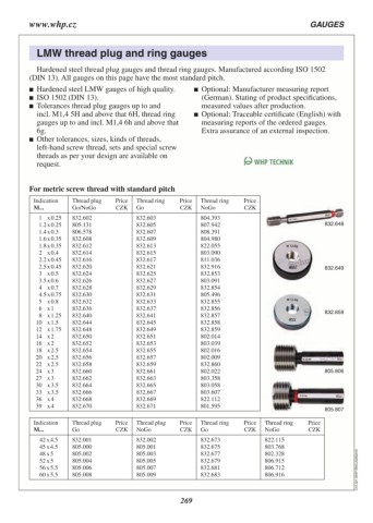 gauges up to and incl. M1,4 6h and above that measuring reports of the ordered gauges.