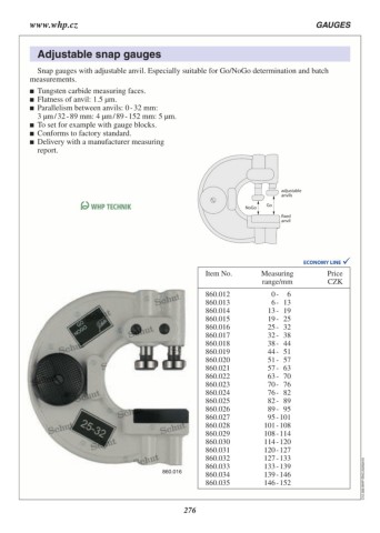 Snap gauges with adjustable anvil. Especially suitable for Go/NoGo determination and batch