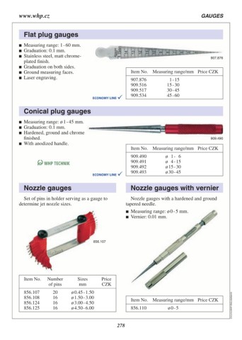 Conical plug gauges Item No. Measuring range/mm Price CZK