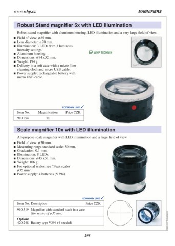Robust stand magnifier with aluminum housing, LED illumination and a very large field of view.