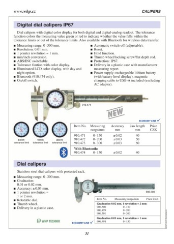Stainless steel dial calipers with protected rack. Item No. Measuring range/mm Price CZK