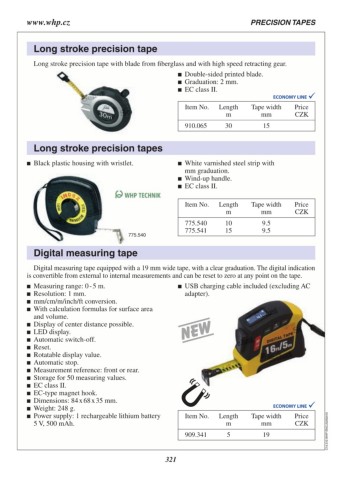 mm/cm/m/inch/ft conversion. Item No. Length Tape width Price