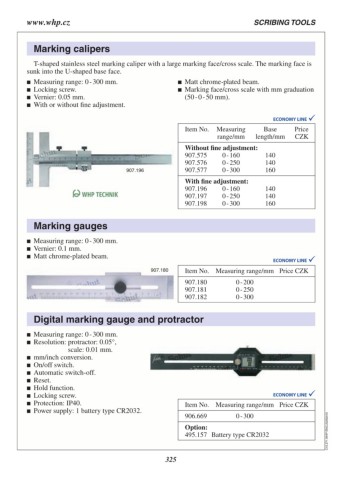 Measuring range: 0 - 300 mm. Item No. Measuring range/mm Price CZK