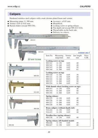 Vernier: 0.05 or 0.02 mm. Monoblock.