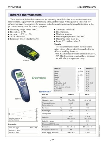 measurements. Equipped with laser for easy aiming at the object. With adjustable emissivity for
