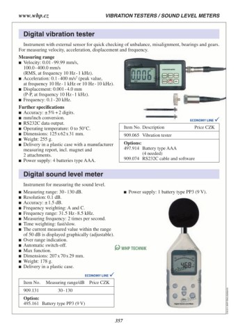 www.whp.cz VIBRATION TESTERS / SOUND LEVEL METERS