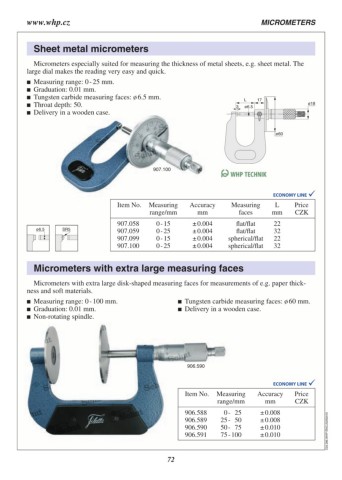 Micrometers especially suited for measuring the thickness of metal sheets, e.g. sheet metal. The