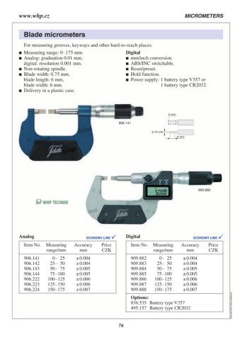 Item No. Measuring Accuracy Price Item No. Measuring Accuracy Price